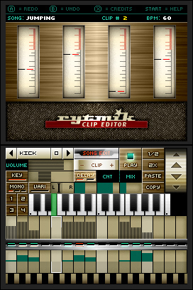 DSi Points: 800/200 (US)Rytmik Rock Edition is an application for creating rhythmic and melodic themes and composing full songs. It contains more than 130 carefully selected sound samples of drums, keyboards, bass, lead and rhythm guitars. With Rytmik Rock Edition you can quickly and easily create the basic building block: an audio clip. It consists of musical notations for up to four instruments that you may transpose, select their location in the stereo field and modify their volume, polyphony and echo. You may arbitrarily combine up to 128 such clips in four tracks and create complex pieces of music. You also have a rhythm library and a varied collection of 10 pre-made compositions at your disposal. For the best musical experience, listen using headphones or a quality speaker system (not included).