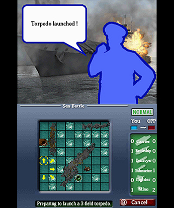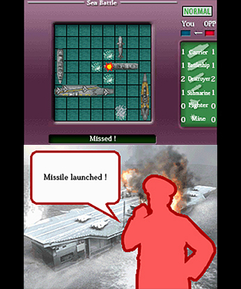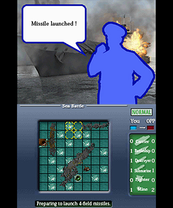 DSi Points: 200/500 (JP)Command your fleet to victory in this epic battle on open seas! Hidden in the untamed ocean awaits an enemy ready to attack. Launch strikes and counter-strikes with missiles and powerful torpedoes to locate and submerge your enemy’s entire fleet in this new rendition of the classic paper and pencil game, Battleship. Use additional content such as scanners to gain intelligence and detect the location of your enemy. Challenge your friends to battles against your fleet to see who really rules the seas with DS Wireless Play or tackle missions and battles on your own in 3 single player modes. Your only hope of survival is to uncover your enemy’s whereabouts before they uncover yours!