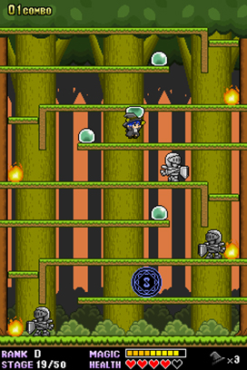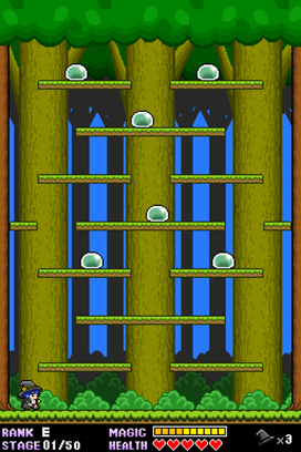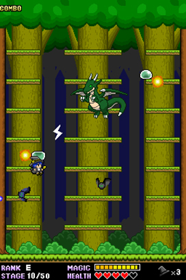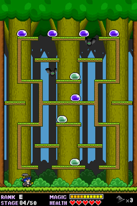 DSi Points: 200Two apprentice wizards have become lost amid a tangled sea of trees. The Phantasmal Forest, a dark, dangerous place inhabited by monsters... It bewitches people with its strange power. The wizards can only use a single spell, one that turns their wands into a magical whip. Defeat enemies and collect valuable items as you battle your way through the forest in this exciting action game. You can select either the male or female character and use their magical whips to capture enemies and defeat them. Your magical whip doesn't do much damage on its own, but with combos, it becomes a powerful weapon capable of defeating a mighty dragon with a single strike. Combos are performed by capturing a falling enemy with your magical whip and then using the captured monster to attack others. Can the wizards escape the evil forest before they become lost forever within its darkness?