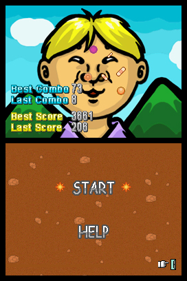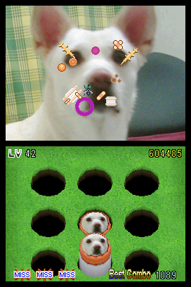 DSi Points: 200Players are able to use their Nintendo DSi systems to capture a picture of a friend or anything else they desire. The picture will be then used in targets that pop up from various holes. Players must use the stylus to tap them back into their holes. The faster this can be done - without making mistakes - the more combos are achieved. As players continue to earn combos, the picture on the top screen will begin to display graphical changes such as bruises, bugs, black eyes, bandages and scars. The simple game design and easy, intuitive controls make it a game that the whole family can enjoy.
