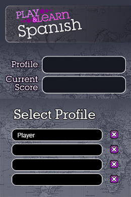 DSi Points: 800Play & Learn Spanish is the fast, fun, and friendly way to learn to speak Spanish! Get ready for an exciting and entertaining challenge as you match the pictures to the words you hear, and see how high you can score. You’ll be surprised by how much Spanish you’ve learned while you play! Over 700 words and phrases with entertaining visuals help you learn quickly and speak with confidence. Listen to and speak aloud Spanish words and phrases while you explore settings such as the supermarket, restaurant, and city streets. Play & Learn Spanish is easy and effective for beginners and travelers and a fun refresher for advanced and intermediate speakers!