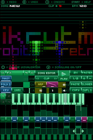 DSi Points: 800Rytmik Retrobits is an application for creating rhythmical and melodic themes and for composing whole songs. Its user interface blends the fast and well-arranged interface of classic drum machines with flexible pattern interface of popular trackers and with modern sound library. It contains more than 180 carefully selected authentic retro sound samples of electronic drums, percussions, bass, melodic instruments and effects from 8-bit and 16-bit computers and classic consoles. With Rytmik Retrobits you can quickly and easily create the basic building stone — an audio clip. It consists of musical notations for up to four instruments that you may transpose, select their location in the stereo field, and modify their volume, reverse, shuffle (rhythm twist) and polyphony (with extended polyphony handling), chorus/widening stereo effect, echo and arpeggiator. You may arbitrarily combine up to 128 such clips in four tracks and create complex pieces of music. Moreover, you have a collection of 10 pre-made compositions at your disposal from which you may quickly compose your own pieces. Rytmik Retrobits is not only for playing with sounds; in the hands of a skilful musician it can become a serious musical instrument — surprisingly powerful pocket music station. For the best musical experience we recommend connecting headphones or quality speaker system. You’ll become the king of the retro party in no time...
