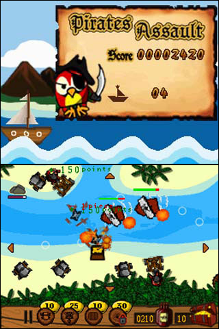 DSi Points: 200Pirates Assault is tower defense game that brings a little twist to the genre. A treasure must be protected, and to accomplish that you have to build the best defense strategy. Even if some pieces of the treasure are stolen, they can be retrieved as long as the enemy that stole your treasure is on the screen and alive. If the enemy is sunk, that piece of treasure can’t be recovered.