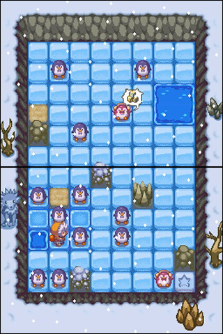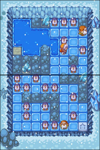 DSi Points: 200Baby penguins have been stranded on thin ice by the evil (but oddly stylish) Walrus, and it's up to the Penguin Patrol to rescue them! Encounter several types of penguins, such as the stubborn Bratty Penguin or the sleepy Fatty Penguin, as you trek across over 75 puzzling levels. But watch out! With each step you take, the thin ice behind you breaks. Without careful planning, you could cut off your own escape route! Featuring a charming pixel art style, delightful music, and thoughtfully designed levels, Penguin Patrol will entice players of all ages.
