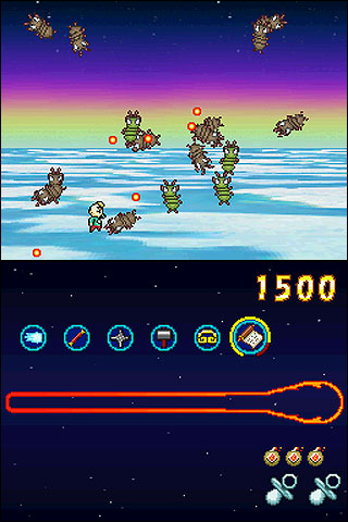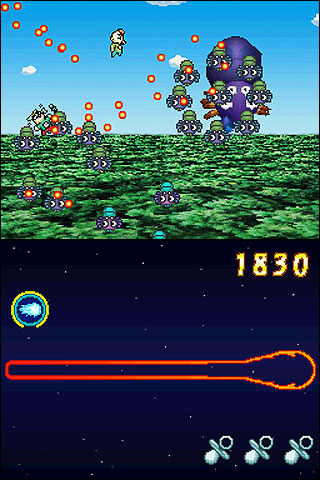 DSi Points: 200/500 (JP)The player controls Paul and his brother, twins of a super hero family who were born with innate super powers. The two brothers have the ability to take flight and attack with powerful projectile energy. However, most importantly, they are both gifted with the ability to take the form and seize the weaponry from fallen enemies. The Insectians have vowed revenge for their defeated ally — the Oceanians. Paul is once again summoned to fight an alien invasion force bent of retribution, but this time Paul is not alone. It’s up to Paul and his twin brother to use their combined powers and weapons obtained from the aliens to fight back and smash the Insectians.