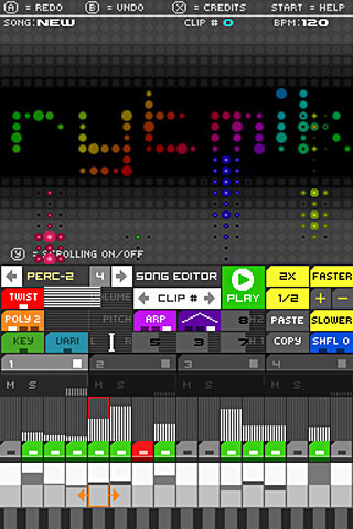 DSi Points: 200/800 (US)Rytmik World Music is an application for creating songs using melodic themes. The library contains 117 authentic sounds of ethnic drums, percussions, plucked, mallet, bowed and wind instruments, complemented with a selection of synth drums, basses and pads, creating a strong and creative mix of sounds and rhythms. When compositions are being played, 20 types of scenes are visualized on the top screen.
