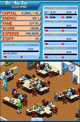 DSi Points: 200Ever dream about making and publishing your digital games? Now you can! Publisher Dream is a simulation game that places you in the owner's seat of a company called Triangle. Triangle focuses on a digital platform call "cShop" for development and publishing endeavors. You can hire people to develop various game genres, and control the game budgets and quality to safeguard limited resources. Do you want to be one of the biggest publishers on cShop? This may be a great way to test your skills before you actually starting your own game company.