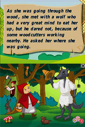 DSi Points: 200Tales to Enjoy! Little Red Riding Hood is one of a collection of Interactive Stories for young children. Each book is filled with features to entertain children while helping them to learn and stimulate their imagination. The game is a series of interactive activities based around the theme of the story about a little girl who decides to visit her grandmother who lives in the forest. Beware you may shout... of the wolf who is looking upon Little Red Riding Hood as a main course for his next meal!