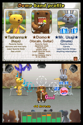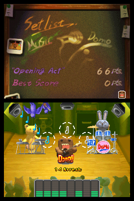 DSi Points: 200In Rock-n-Roll Domo, you'll control Domo as he takes the stage in search of fortune and fame. Hit the right notes in rhythm (using the touch screen, if desired) to rock the house. If your timing needs work, use the mixer to practice songs. Complete five different songs at a series of increasingly larger venues to help Domo become a superstar.