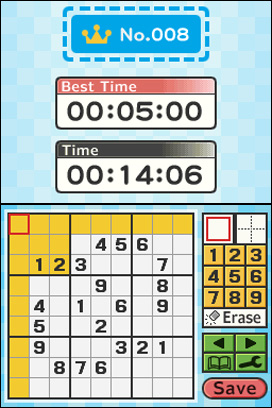DSi Points: 500Introducing 100 "Super Hard Puzzles" for the hardened sudoku veteran. All puzzles are skillfully designed for a level of satisfaction that computer-generated puzzles just can't offer. You can play through puzzles to learn about rules and controls in Tutorials mode. Other handy features include Write Mode and Temp Number for an easier, more enjoyable sudoku experience.