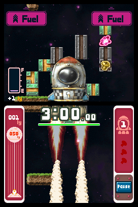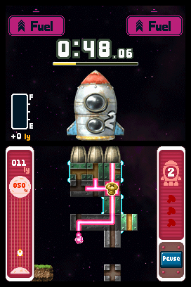 DSi Points: 500Take your puzzle-solving skills to new heights in Link 'n' Launch, a puzzle game in which you must move tiles to create a path that connects fuel to your rocket, blasting it through space. Complete the basic training mode to learn how to play Link 'n' Launch, and then buckle in for the ride through the robust Missions and Puzzles modes. Missions mode has you propelling the rocket through space to reach the target planet within a three-minute time limit, while Puzzles mode challenges you to clear all fuel and pipe tiles from the screen. In both modes, not only do you need to create a path to keep your rocket fueled, but you'll also have to account for immovable tiles and special tiles that upgrade your rocket or give you additional time to complete the level, all while keeping your rocket's flight path within the established boundaries. The launch countdown has begun — are you prepared?