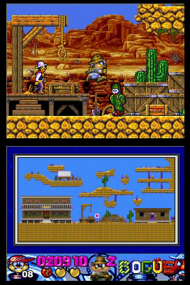 DSi Points: 800Following his Oscar in Toyland escapades, Oscar now plays the leading actor in sensational worlds of hit movies and TV shows. From Sci-Fi to Cartoon, Western to War, Horror to Jurassic and more, this is a game not to be missed. Oscar in Movieland features eye-popping graphics, parallax scrolling backgrounds and fabulous game play. This jump-and-run game is easy to play and packed with hours of fun and nonstop action. Use Wings to Fly, Springy Boots to Jump, and Oscar's secret weapon — his magical Yo-Yo — to swing on and zap enemies in some of the craziest platform levels you'll ever play.