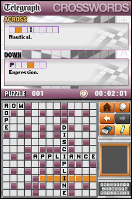 DSi Points: 500Play crossword puzzles from the Telegraph like you've never played them before. Discover 500 puzzles of multiple types. You're in for many hours of game play. With its handy interface and intuitive controls, this game transfigures the classic pen-and-paper experience. Notable features include: