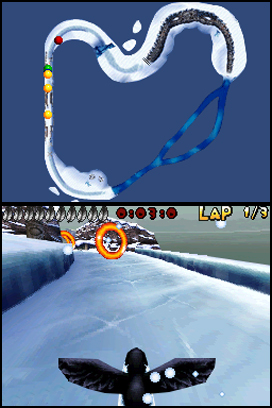 DSi Points: 500Get ready to challenge the speediest puffins on the island for the title of Fastest Flyer in Puffins: Let's Race! Race against the clock or go head-to-head with your opponents in a battle to the finish line. Use cleverly placed power-ups like the squawk shot to get ahead of the pack and claim victory. Race through four different game modes on eight different tracks to prove your skill, or challenge up to three of your friends via local wireless play. Do you have what it takes to become the race champion of Puffin Island, or will you be left behind with the rest of the flock?