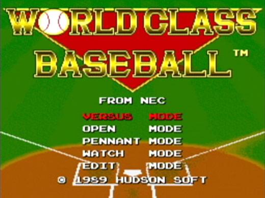 Acclaimed for its steady game play, World Class Baseball is the definitive baseball game on the TurboGrafx16. Battle the computer in OPEN MODE or play a friend in VERSUS MODE. Customize your team in EDIT MODE or even watch a game between two computer opponents in WATCH MODE. World Class Baseball offers the complete baseball gaming experience. Of course there's also plenty of single-player action. The main feature is PENNANT MODE, where the player chooses a team from one of the world's leagues and strives to win their team's league. Beat league rivals and save your progress with passwords on your way to becoming league champions. After winning your league, get ready to the face the other league's champion in the heated series for the world championship.