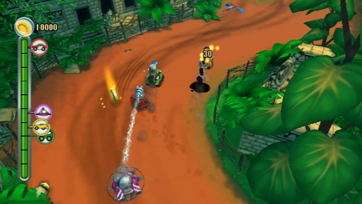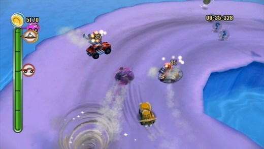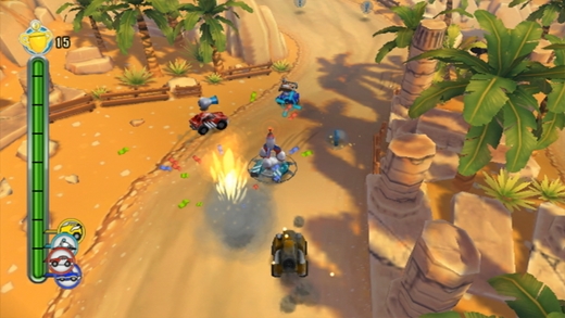 TNT Racers is a fun multiplayer racing game full of variety, combining fast as lightning race action with brand new features. The Shadow Race feature lets every player stay in the race even if a driver is clearly in an inferior position. But the best things are the wicked pick-ups which will ultimately decide about victory or defeat. TNT — Tracks ’N’ Tricks — cool tracks and snappy gadgets! A powerful adrenaline kick is guaranteed. Grab TNT Racers today and let your competitors eat dust!