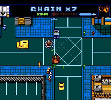 Cruise through the open-world in stolen vehicles while outrunning the law and mowing down fellow citizens! Jump on pedestrians for coins, or use them for target practice with over 25 weapons and power-ups! WHOA!