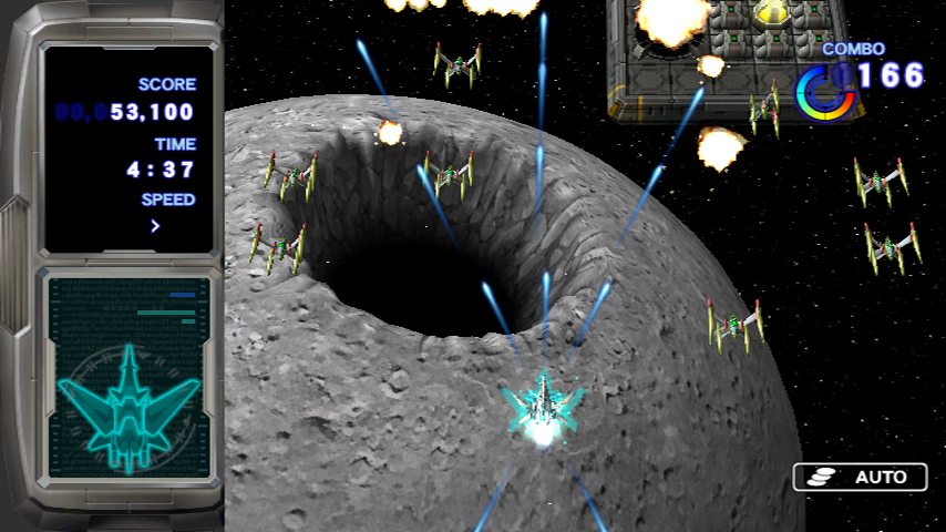 Star Soldier R is a new kind of shooter where players aim for the best scores within a two- or five-minute time limit. Develop various scoring strategies, and pump out those points within the breakneck time frame. Assembled in record time to counter the advance of a powerful enemy, the mysterious Brain Forces, the "Caesar" starfighter takes off to fight for the very future of mankind. Shoot down countless enemies, upgrade your ship to the max with power-ups hidden throughout the levels and wage an all-out assault against the core of the enemy fortress. Combining the excitement of shoot-'em-ups with in-depth scoring strategies, this state-of-the-art competitive shooter will keep you coming back for more. Upload your best scores with Nintendo Wi-Fi Connection, and pit your skills against the world's best fighter pilots from the comfort of your living room. Hone your skills and show the world who's boss.