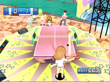 Wii Points: 500/800 (EU)/800 (AU)It's time for some good old family fun, and what's more fun than table tennis? Just like a real family, choose your character from a cast of four, which includes Daddy, Mommy, Sarah and Billy. There are four table tennis-tastic stages where it doesn't matter if you're an indoors or outdoors table-tennis player. Pick your poison from a gymnasium, a forest park, a beach or even an amusement park. Choose from Single or Versus mode, or select a minigame to play. In Versus mode, you and a friend can play against each other to see who is the better table-tennis player. And if Single and Versus modes aren't enough, select between three minigames, which include Target Table Tennis, Thrilling Table Tennis and Matching Table Tennis. The appealing cell-shaded graphics and endearing music, on top of the super-fun game play, will have you and your family playing from morning till night. Get your paddles ready.