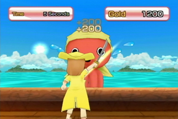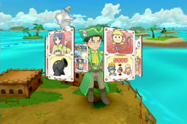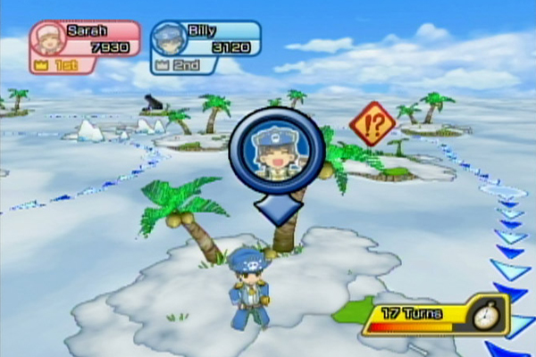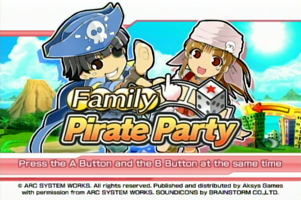 Daddy, Mommy, Sarah and Billy make their return as pirates sailing the seas and skies. Roll the dice and sail through the islands to gather the treasures each island holds. The person with the most gold at the end wins. Family Pirate Party shines with its appealing cel-shaded graphics and endearing music. Challenge up to three other players (friends, the CPU or both) for some four-player board-game fun. Do you have it in you to defeat your opponents and become the king of Family Pirate Party!?
