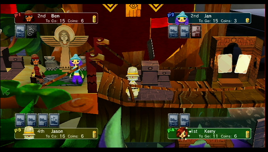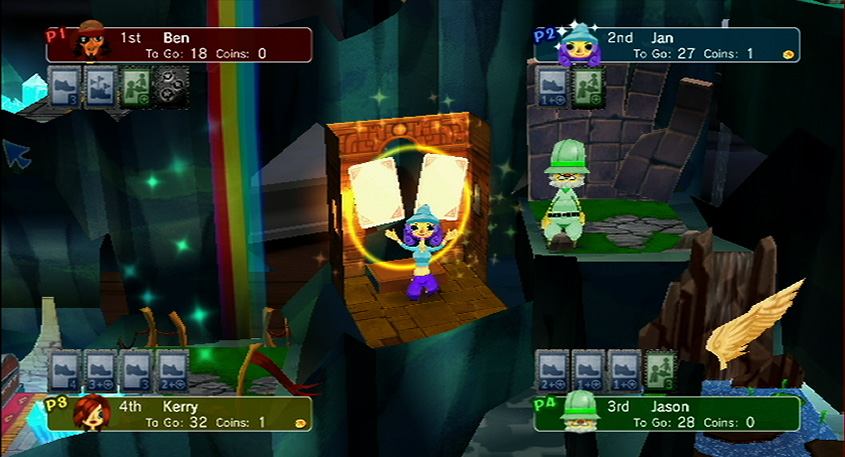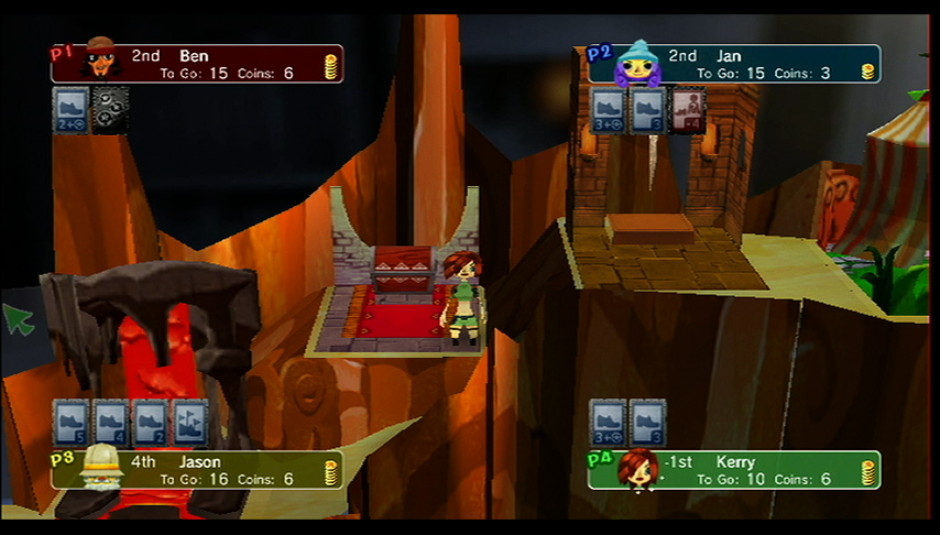 Wii Points: 800/1000 (JP)Enter the world of PictureBook Games: Pop-Up Pursuit and enjoy a family board game set in a pop-up picture book. Instead of simply rolling dice to move along the map, you'll use cards (which can help or hinder progress) and coins (useful for buying more cards, but don't forget about your Coin Bonus at the end of the game). Spaces on the map play an important role in the game's outcome, and your computer-controlled opponents exhibit different personalities and behavior. Occasionally, the mysterious Book of Magick will be opened, causing an event that may change according to how you play. This mixture of exciting game play and charming, artistic atmosphere give Pop-Up Pursuit high replay value and unique depth—even if its characters are flat.