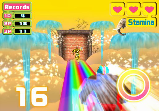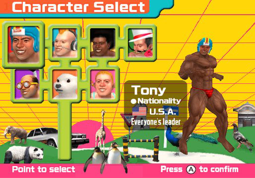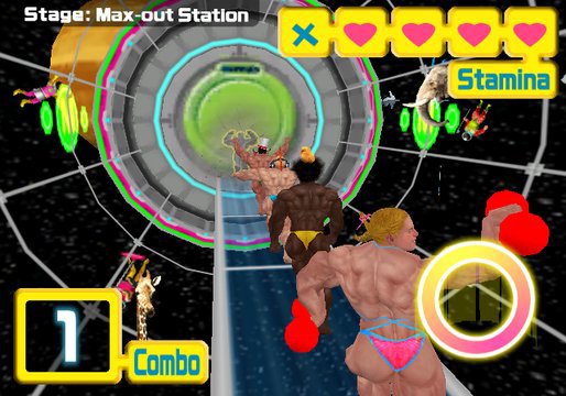 Wii Points: 500/800 (JP)Muscle March is a quirky Japanese action game stuffed full of macho bodybuilders. The all mighty protein powder has been stolen, so it's up to Tony and his muscle-bound crew to catch the thieves. Choose from a variety of perfectly molded superstars and bring these terrible villains to justice. As the thieves attempt escape, they will smash through walls while making a variety of poses. You must match these poses to fit through the holes and catch up to the thieves. The protein powder will be yours again! Flex your muscles by yourself or with up to three friends in turn-based macho excitement. Posing for a few minutes not enough? Enjoy Endless Rush mode until your muscles bulge and explode! Muscle March will also be the first WiiWare title to offer a polar bear in tight swimwear!