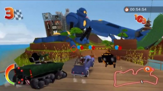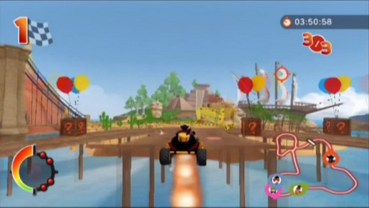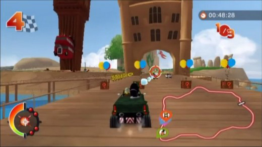 Wii Points: 1000Six drivers are competing on a popular TV show: an English lord, a dangerous beauty from Russia, a Mexican desperado, an eccentric Frenchman, a Japanese prodigy and an American bulldozer. Whichever driver you choose, you'll have to drive and shoot simultaneously to be the first to cross the finish line. The game includes 20 different races and six thematic islands styled to look like a big amusement park. Unique game play lets you drive with one hand while aiming with the other. Discover tons of content like new items, trophies and time trials.