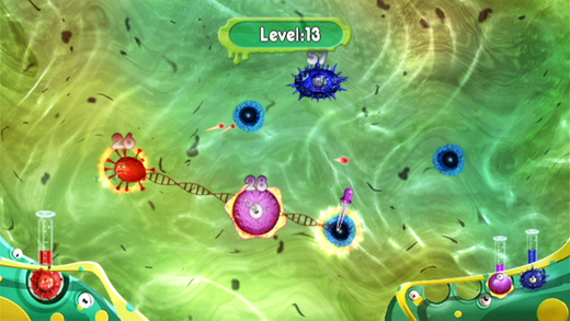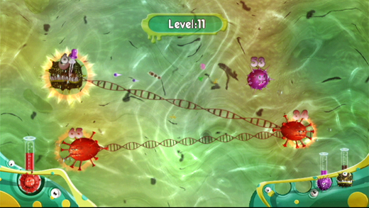 Wii Points: 500Combat nasty viruses in this progressive arcade puzzle-like challenge. Gene Labs is an arcade puzzle game set in the world of genetic science and experiments. New viruses that are capable of genetically changing any living organism are spreading all around the world. The only hope is to cure the infected cells by looking at them under a microscope and injecting the anti-virus solution at your disposal. The goal of the game is to distribute the anti-virus solution to the cells visible under the microscope before they become infected by deadly virus. Drag the solution from healthy cells to infected cells to kill them and/or prevent the healthy cells from becoming infected by the bad virus.