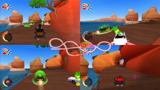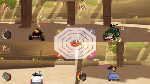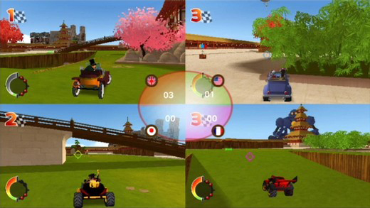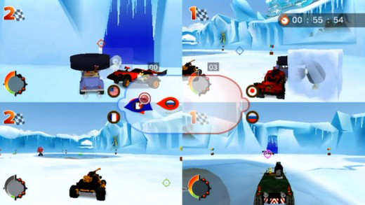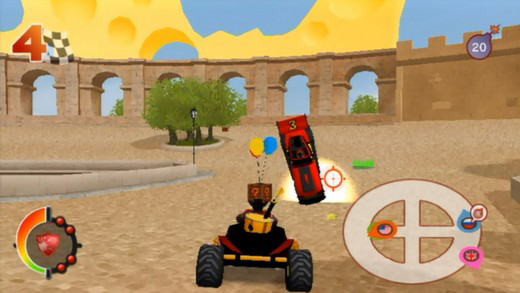 Wii Points: 600Do you like unusual motor sports challenges? Racers' Islands - Crazy Arenas includes five wacky activities/challenges: a golden totem to capture in a lost temple, a wild ascent to an infernal mountain peak, an ice hockey tournament between racing cars, a paintball contest powered by engines and a time bomb to toss to your opponents as quickly as possible. During these frenzied events, players must drive with one hand while aiming with the other.