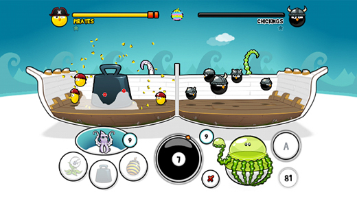 Wii Points: 800/500 (JP)In chick chick BOOM, you throw pianos, pink elephants and sumo chicks or summon slimy giant jellyfish and real UFOs. Draw lines in the arena to defend against your opponent's attacks. The skill lies in your use of ink, creativity and timing. Extra help is provided by a corncob and a piñata (yes, really!). Play on your own or with friends. To keep things interesting, there are various game modes and different arenas, each with its own special attack. Arenas include City, Ship and Haunted Wood. Five teams are playable immediately, and there are 10 more to unlock. Game modes include Duel Mode, Time Mode and Pro Mode. Your best scores will be saved for you to beat.